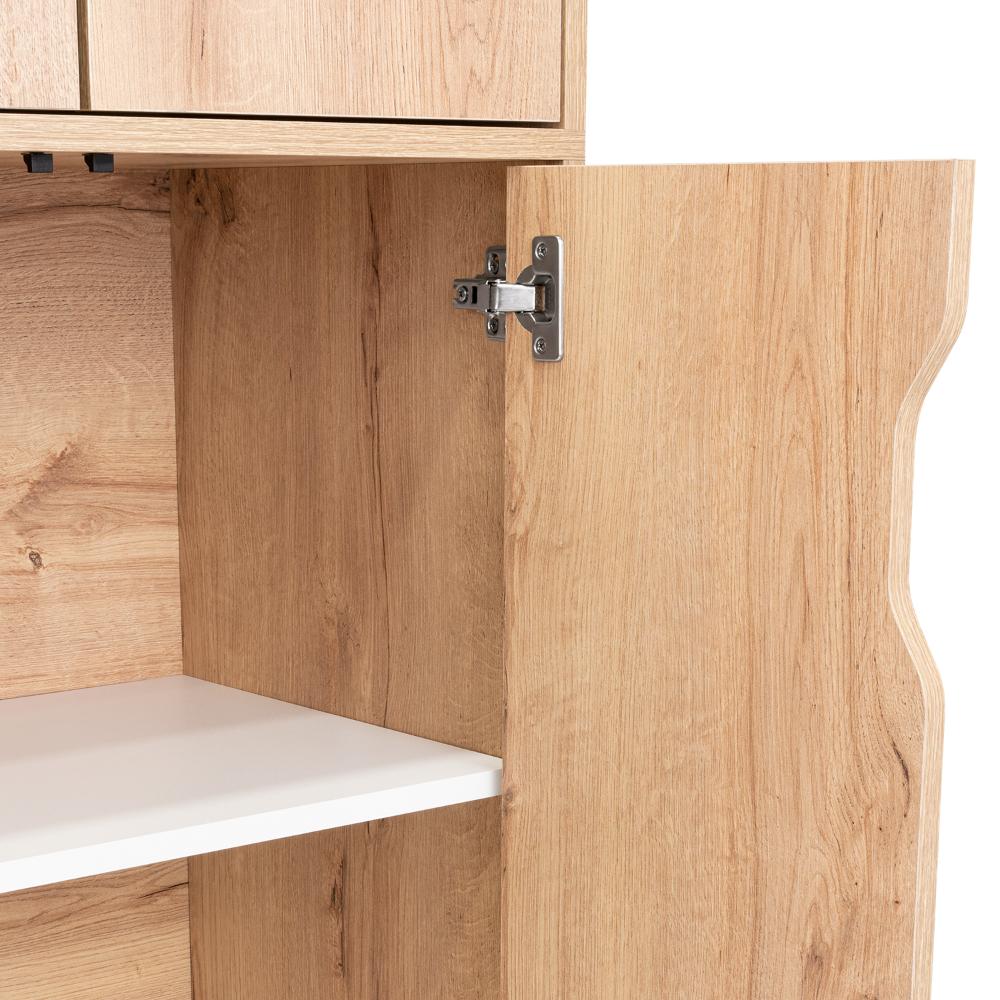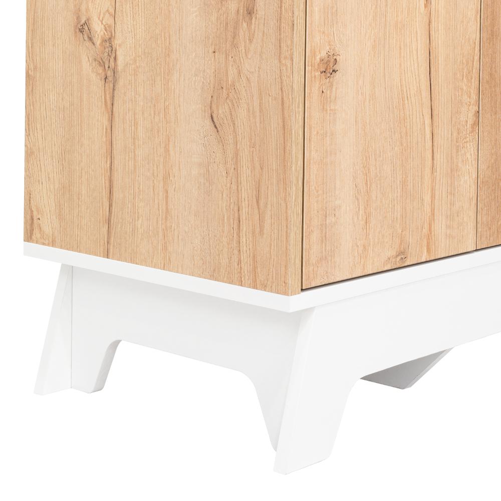 Elaborado en Madera aglomerada MDP, recubierta con láminas melamínicas de excelente calidad, en color Café Claro y Blanco.