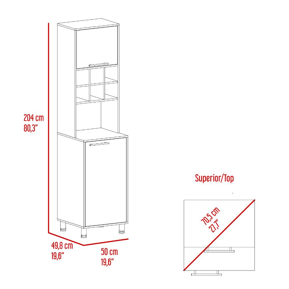 Alacena, con espacio para guardar botellas de vino, espacio para almacenamiento, puertas abatibles.