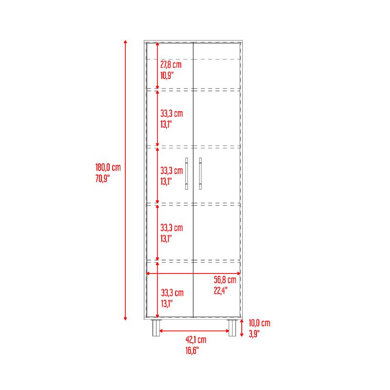 Alacena, con amplios espacios para almacenamiento, dos puertas abatibles, cuatro entrepaños para guardar alimentos utensilios de cocina y/0 electrométricos