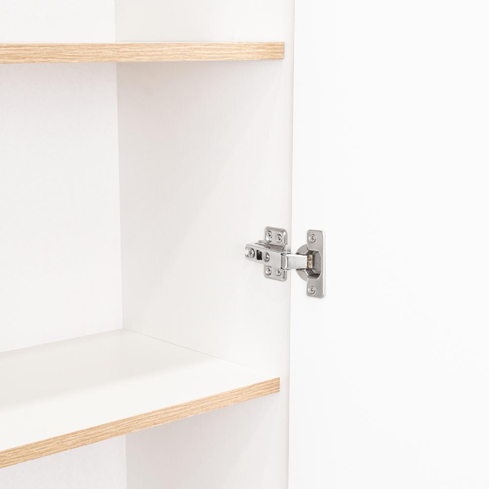 Elaborado en Madera aglomerada MDP, recubierta con láminas melamínicas de excelente calidad, en color Café claro y Blanco.
