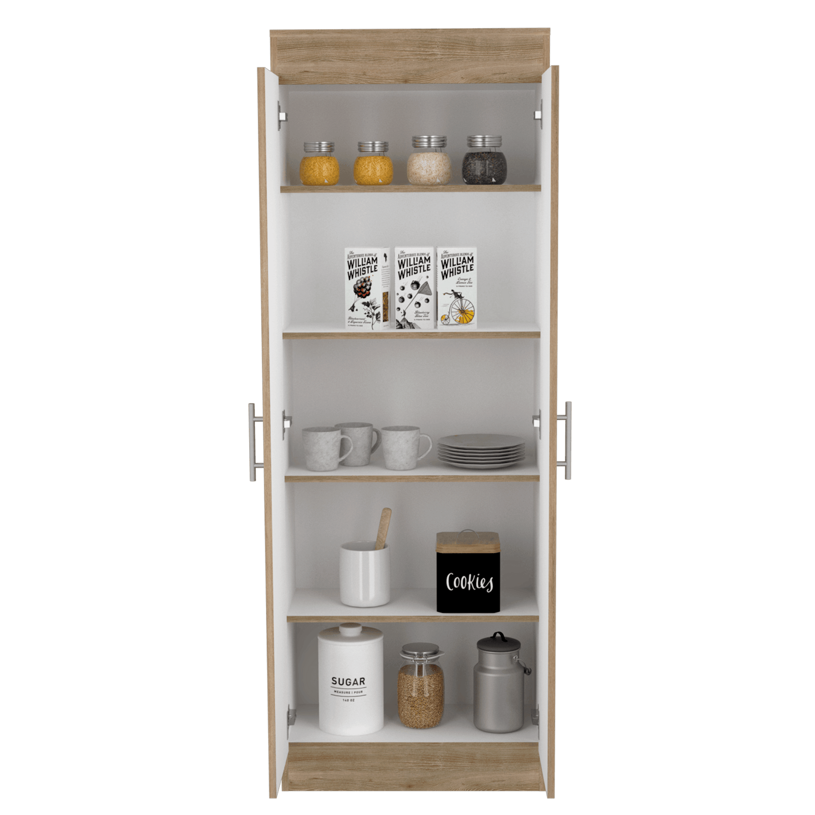 Alacena, con 5 entrepaños y, variedad de entrepaños.