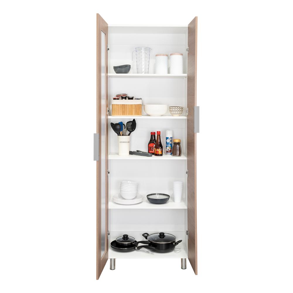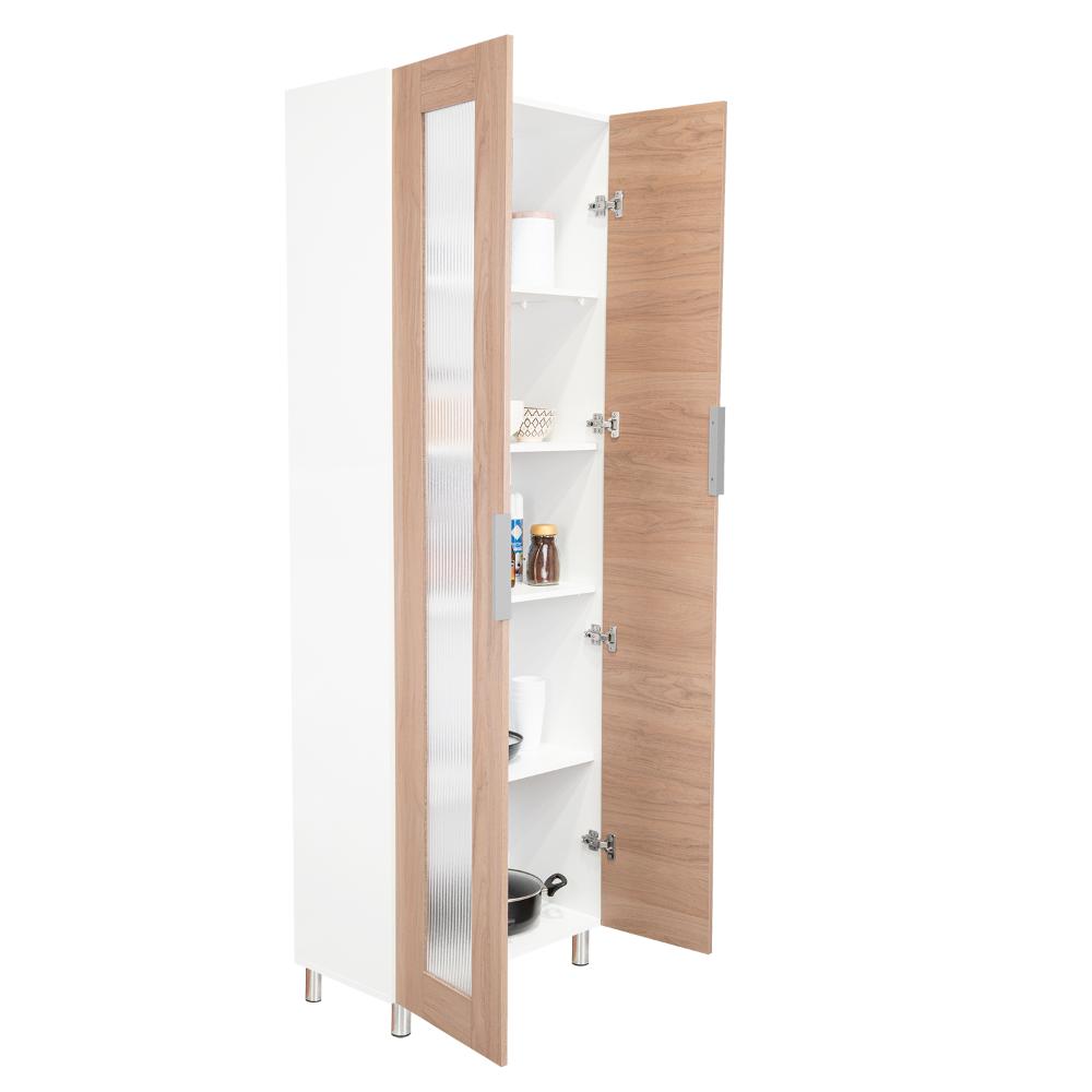 Alacena, con dos puertas batientes, puerta con lamina en acrílico, amplios espacios para guardar alimentos y electrodomésticos.