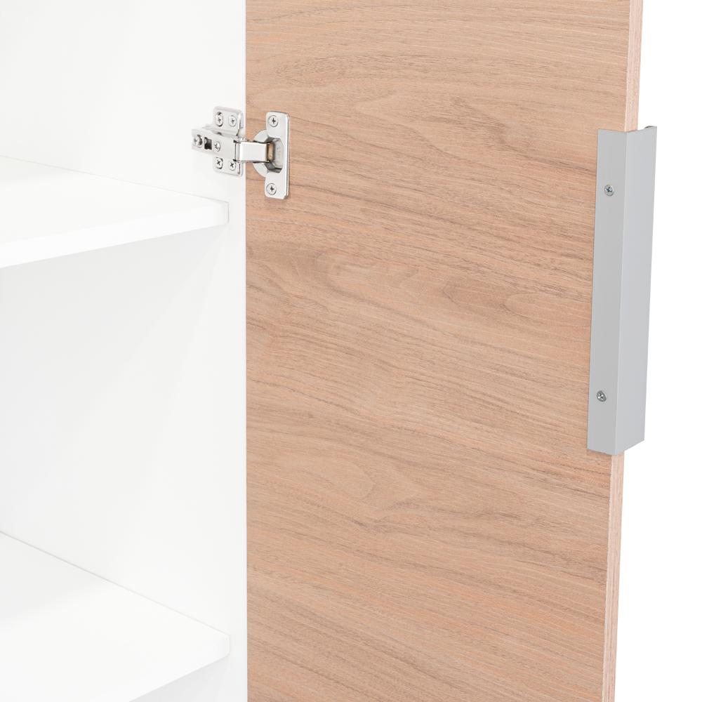 Elaborado en Madera aglomerada MDP, recubierta con láminas melamínicas de excelente calidad, en color Blanco y Castaño.