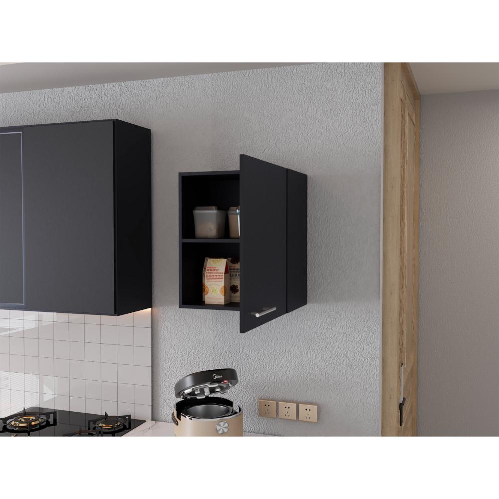 Alacena, con una puerta abatible, espacio para guardar objetos como libros y decoración y facil instalación.