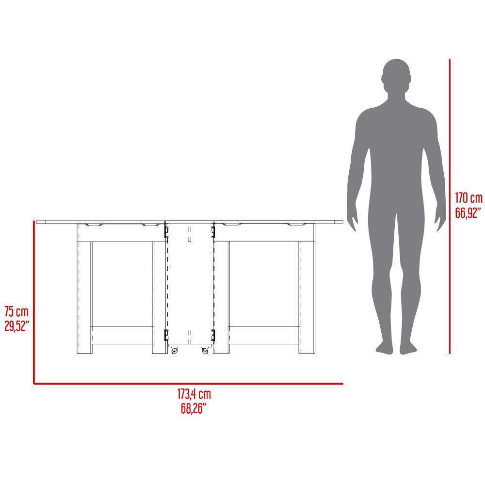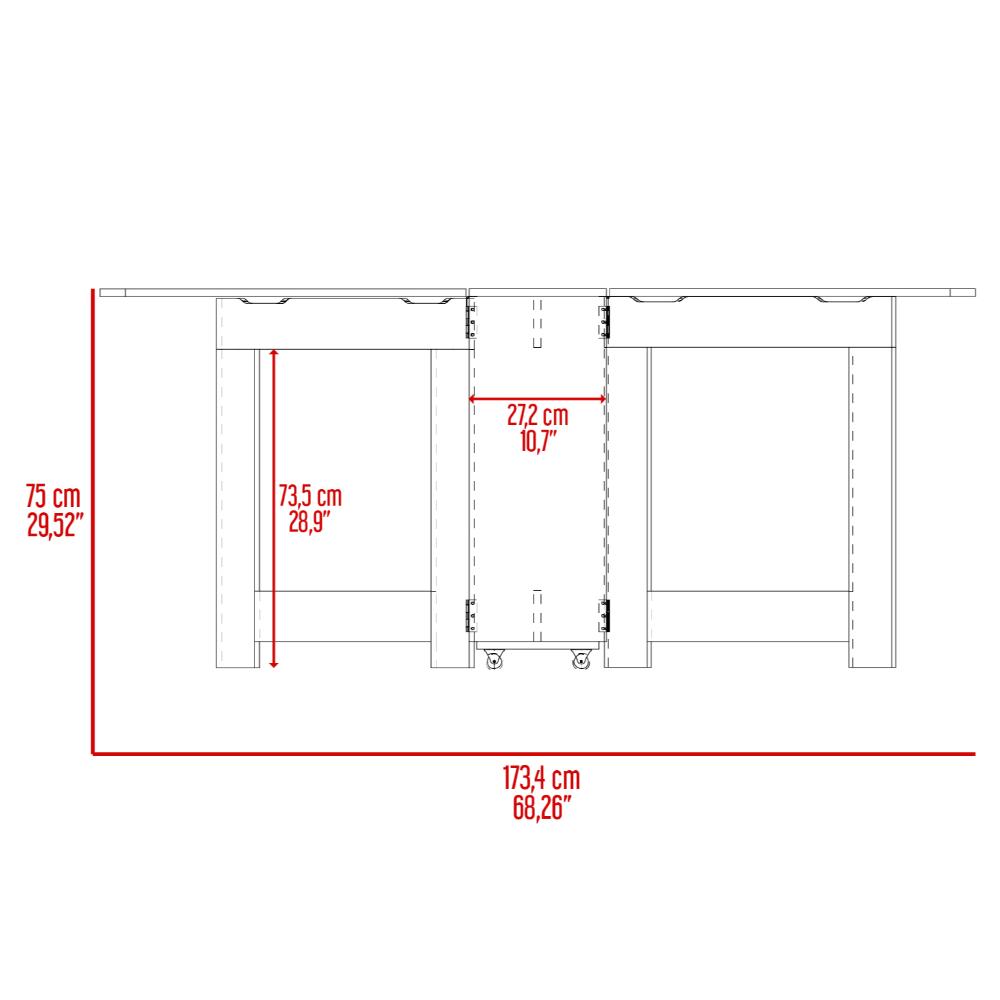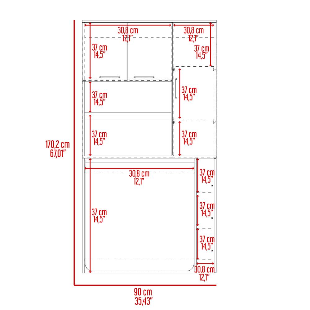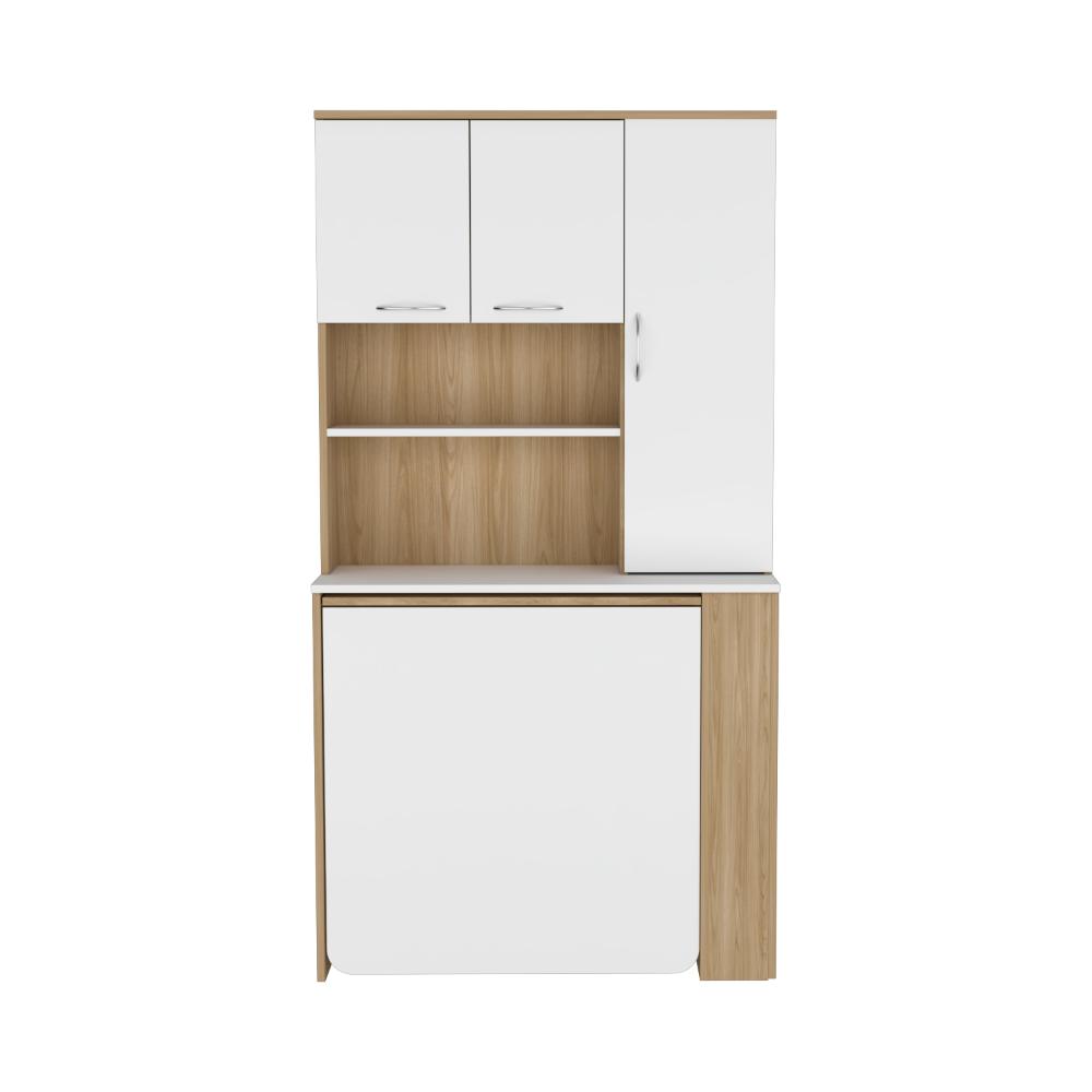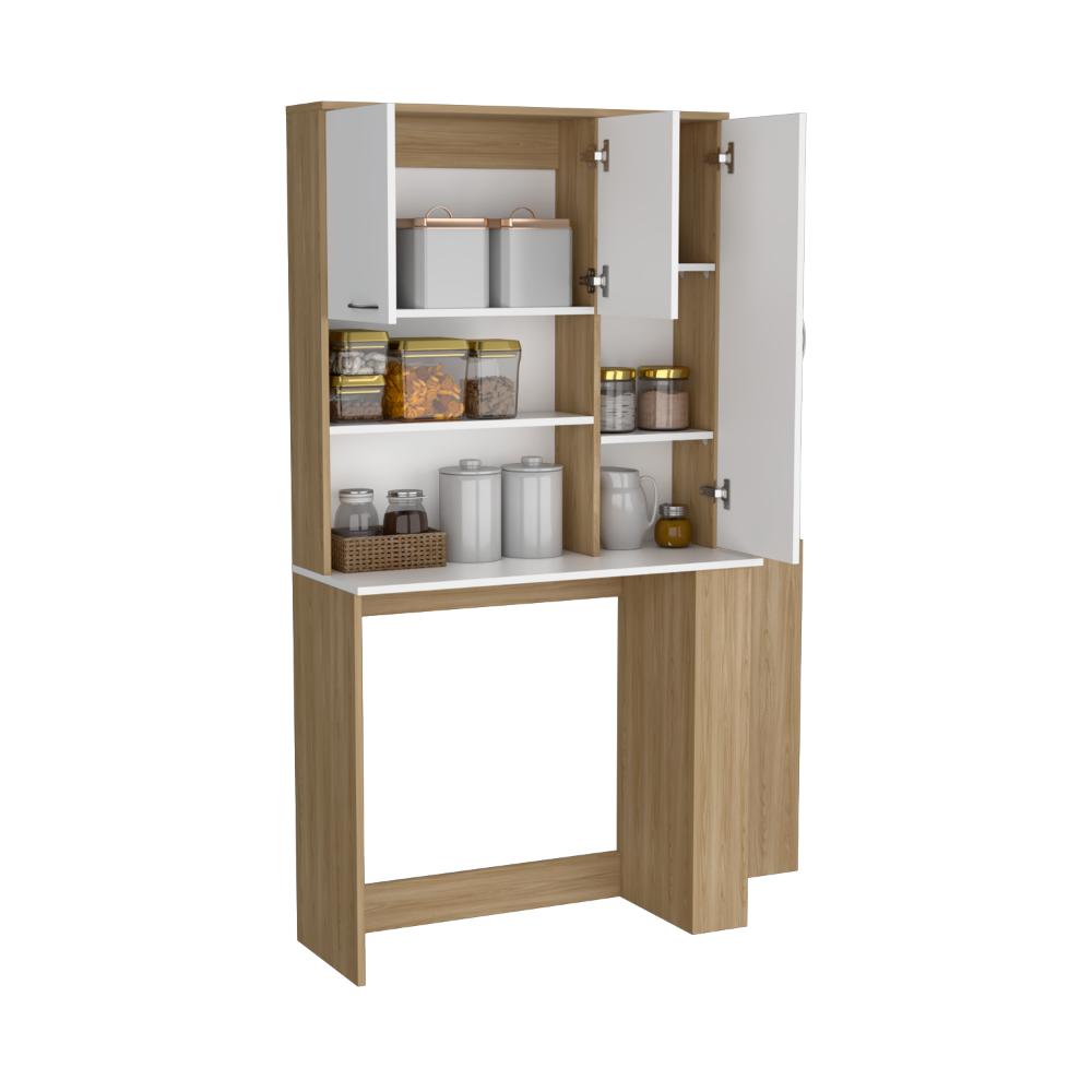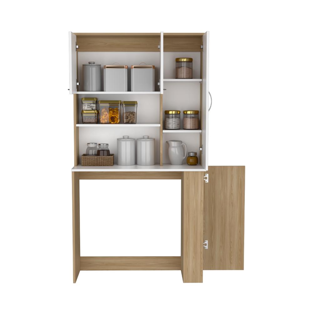 Alacena, con tres puertas batientes, mesa móvil plegable, amplios espacios para guardar alimentos y electrodomésticos.