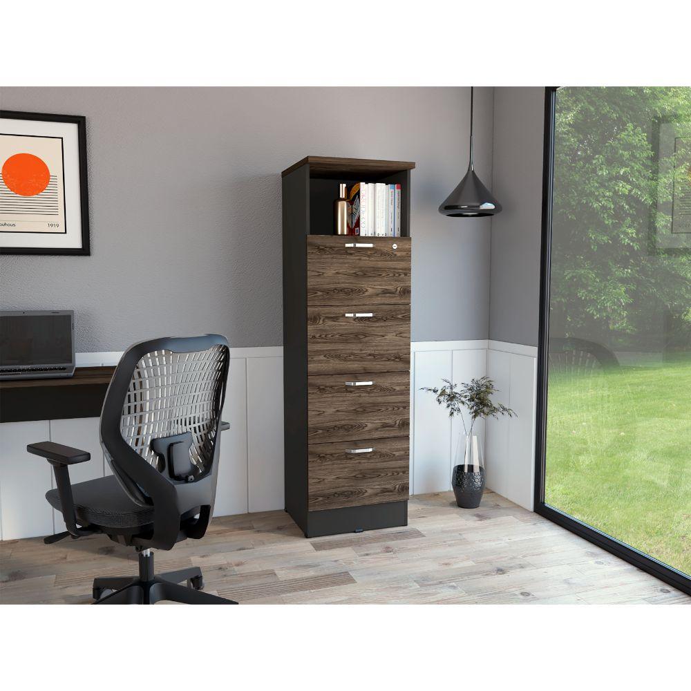 Archivador Alto Narak, Chocolate, Cuatro cajones y un cajon con cerradura