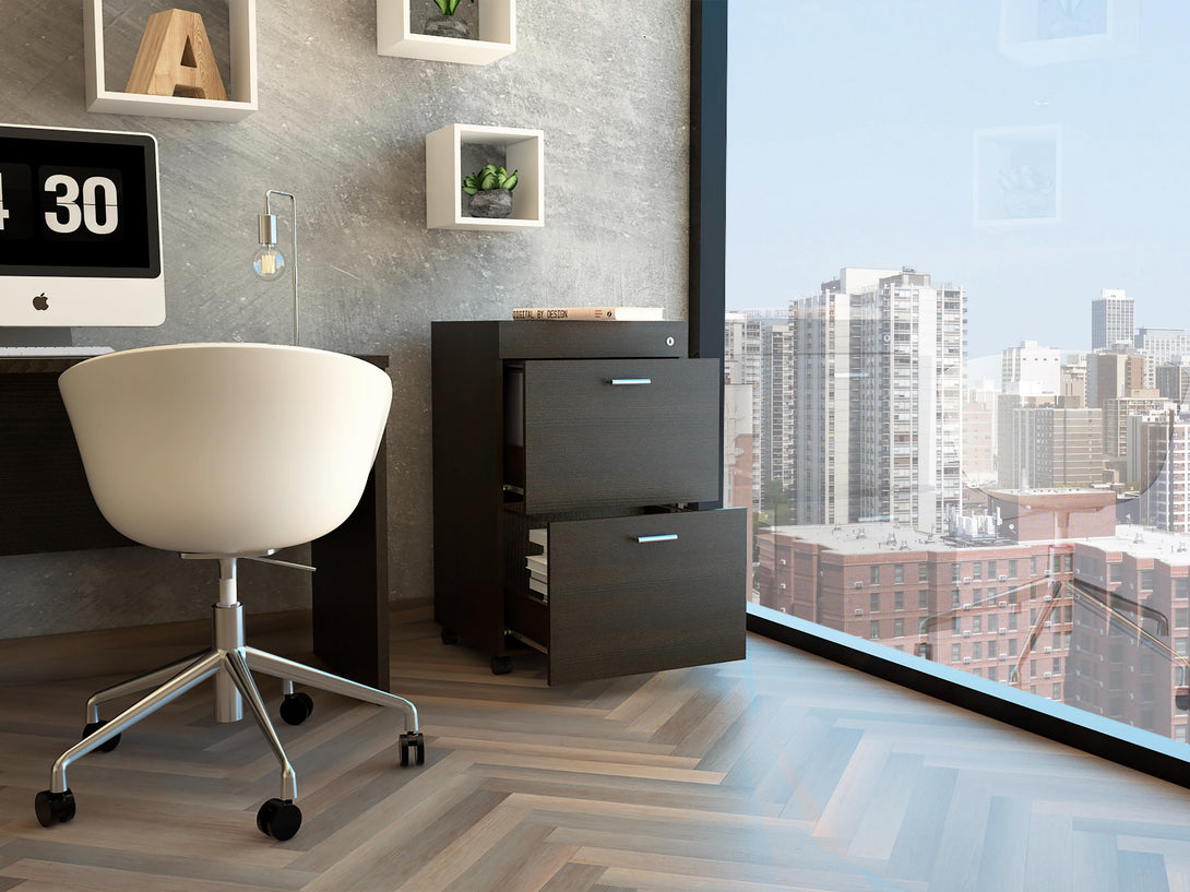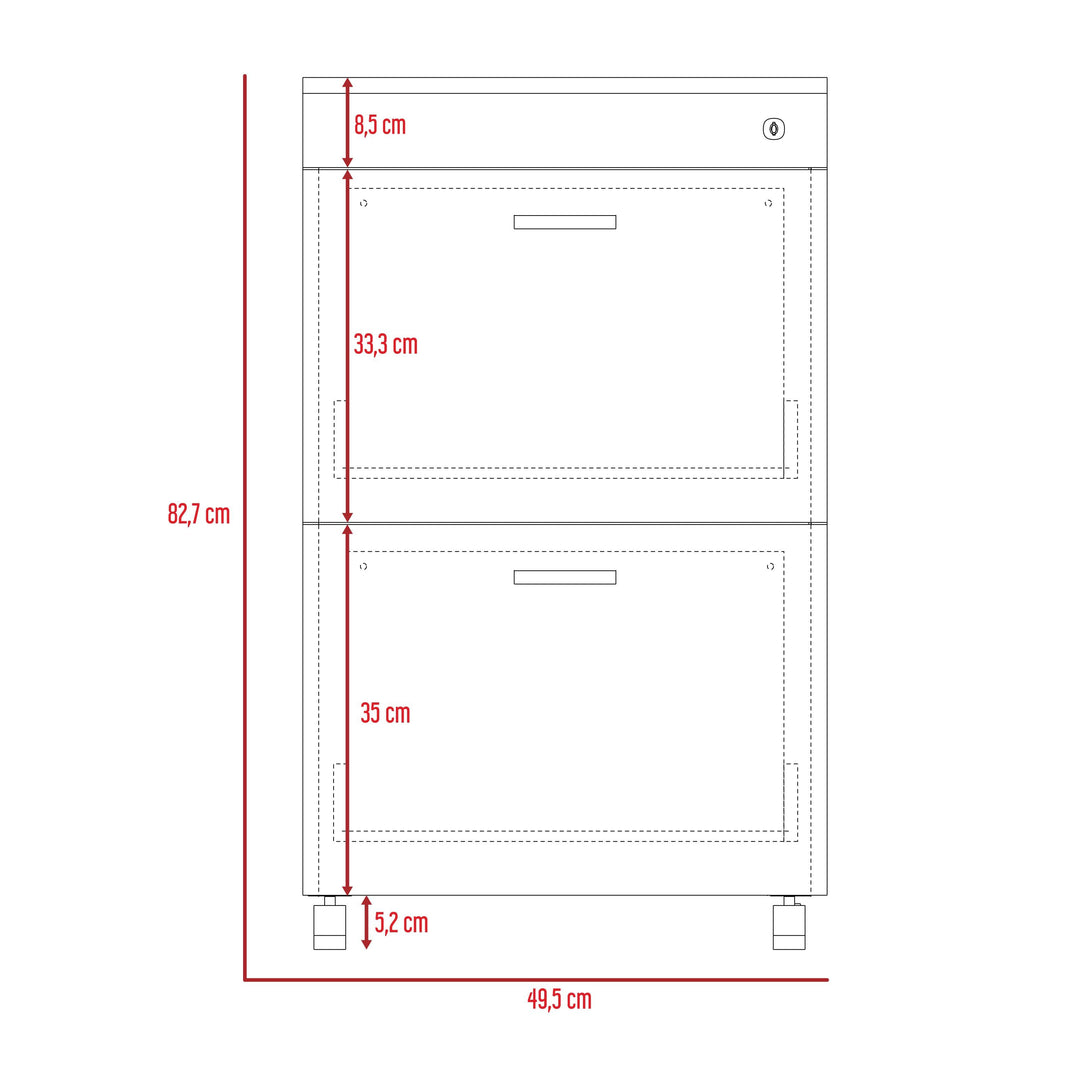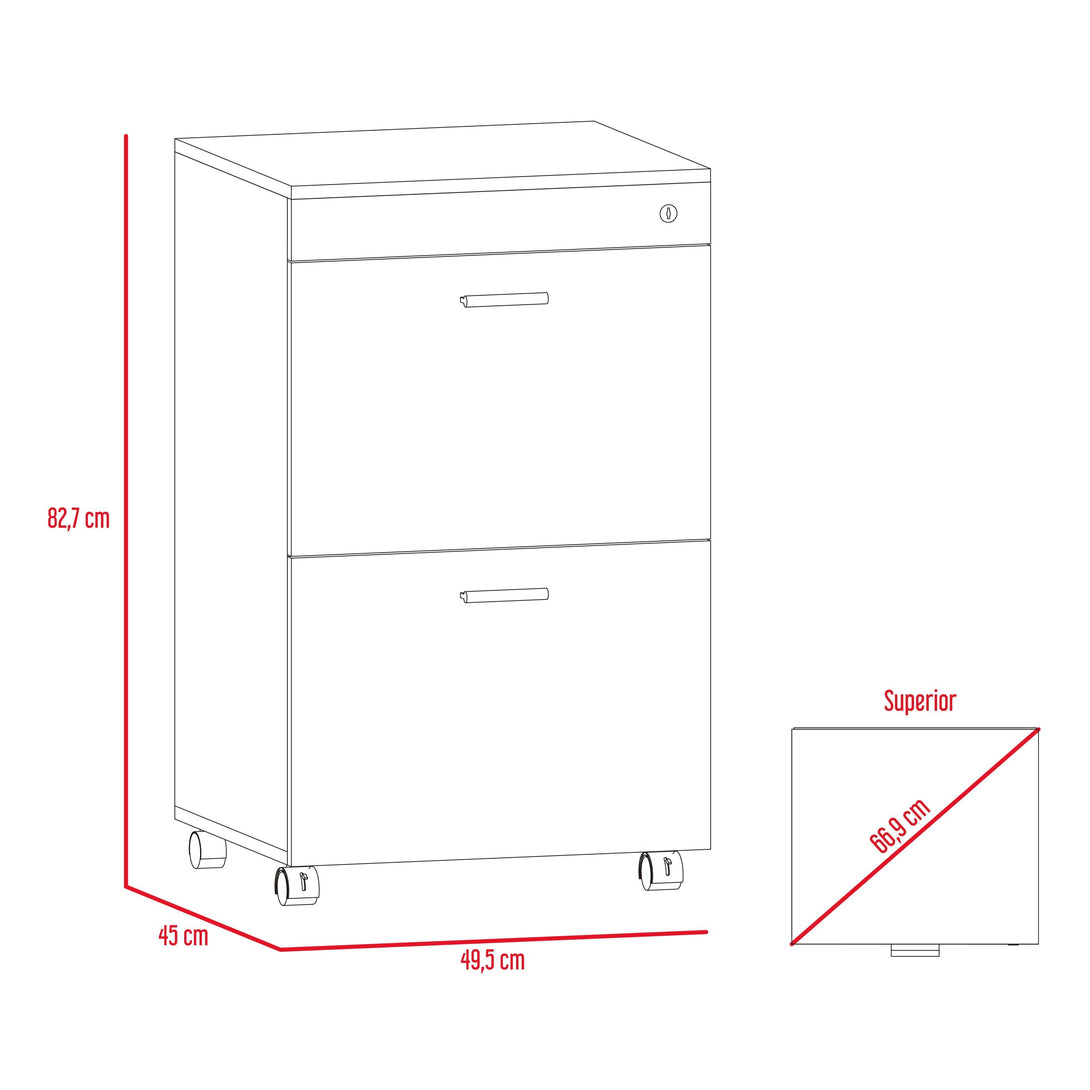 Archivador, practico archivador con buena capacidad de almacenamiento, contiene cerradura con llave de bloqueo central para dos cajones, 2 cajones archivadores con corredera metálica, posee rodachinas plásticas para un fácil desplazamiento.