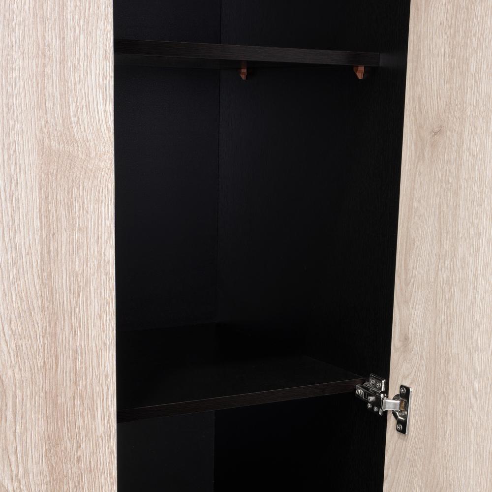 Elaborado en Madera aglomerada MDP, recubierta con láminas melamínicas de excelente calidad, en color Wengue y Humo.