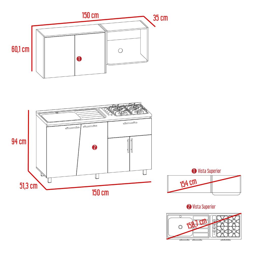 Cocina Integral Emilia, Wengue y Fresno Europeo, Incluye Meson Izquierdo