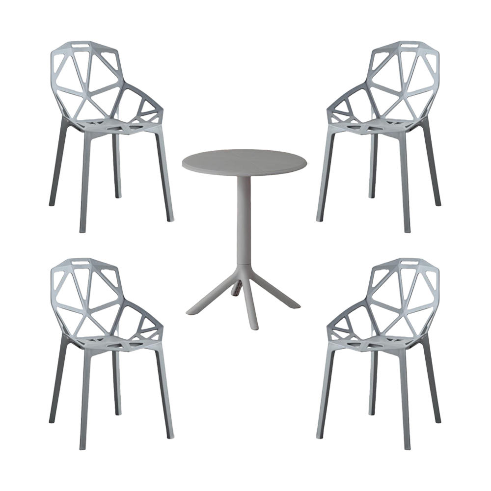 Combo Nova, Incluye Mesa Redonda y 4 Sillas en Color Gris Oscuro