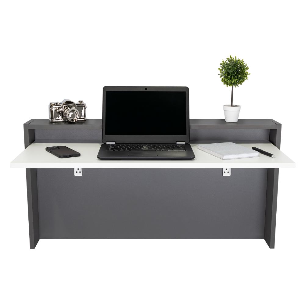 Escritorio Colgante Frello, Plata Oscuro y Blanco, con Espacio Para Artículos de Estudio