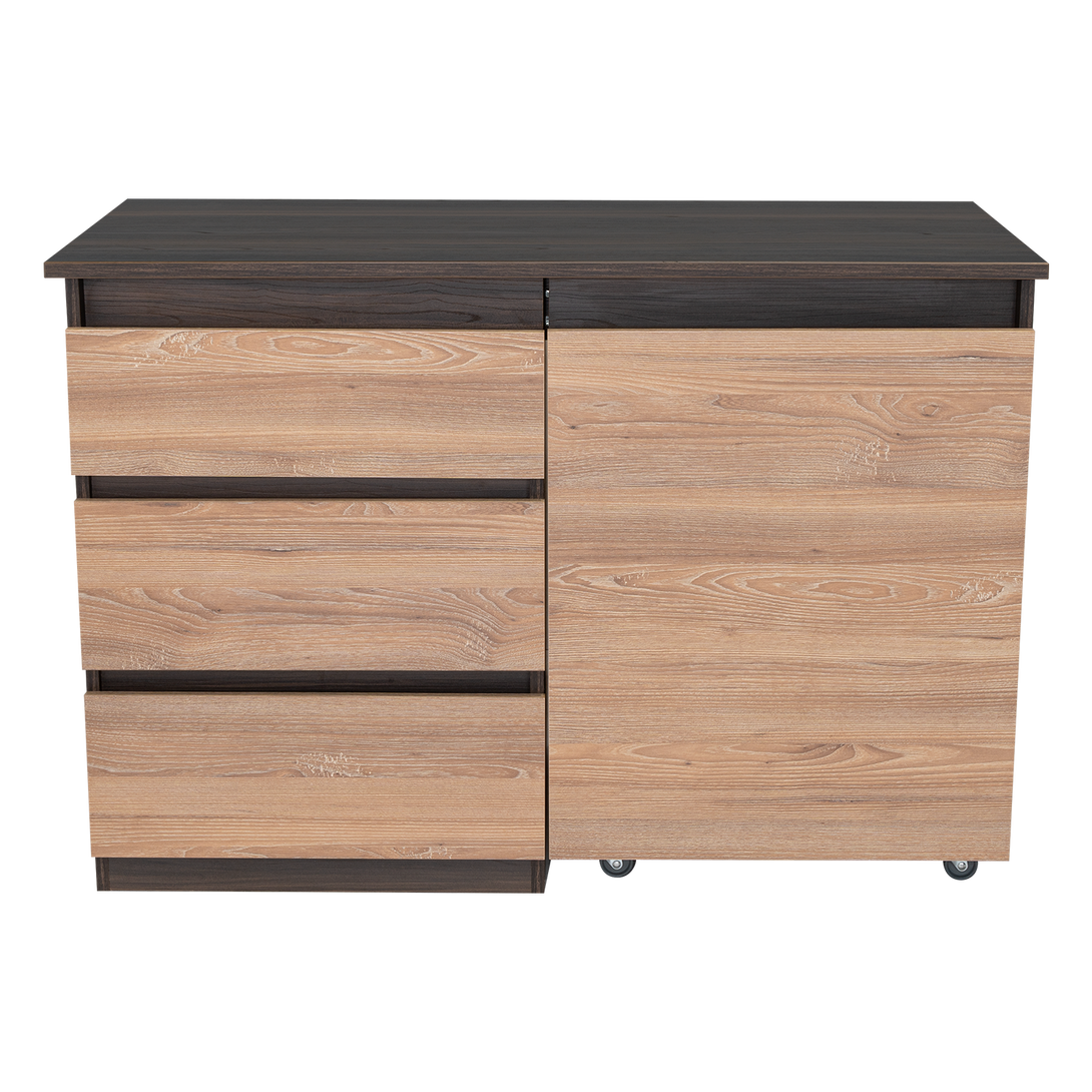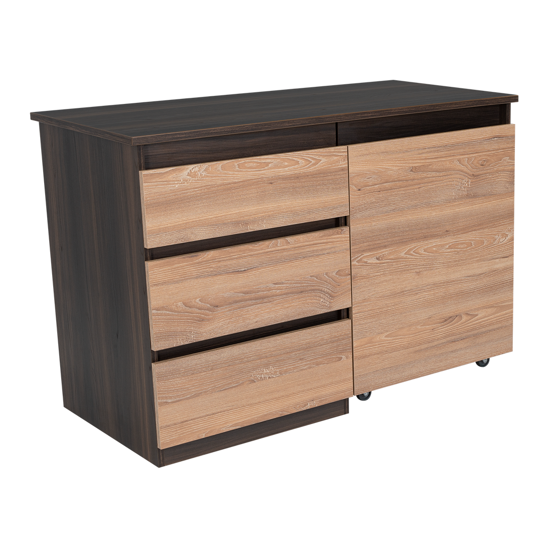 Escritorio, con modulo derecho movil que permite cambiar funcionalidad del mueble, tres cajones de extencion total
