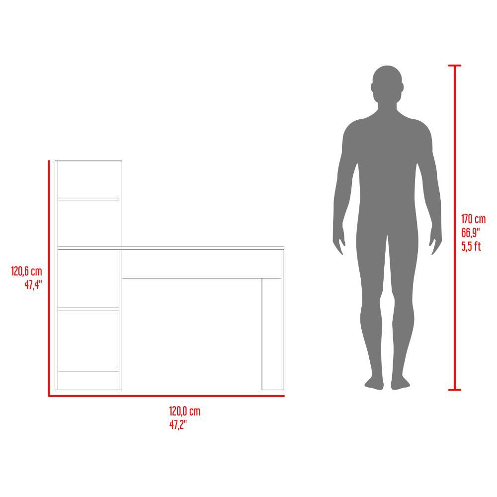 Escritorio, con amplia superficie de trabajo, 4 entrepaños para ubicar libros y/o elementos decorativos.