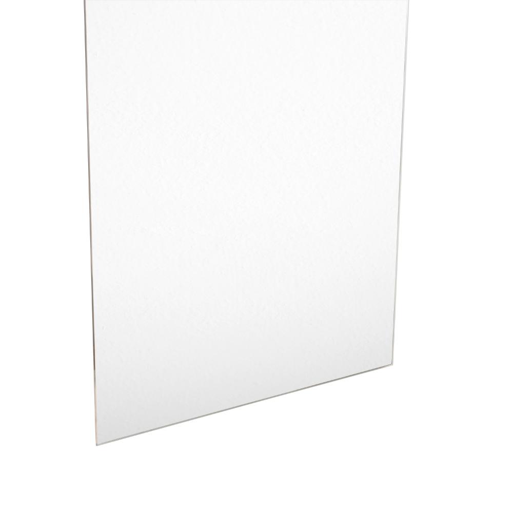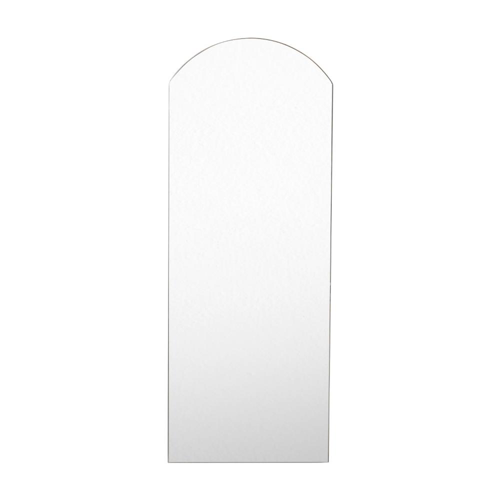 Espejo rectangular, con extremo superior en semicirculo, y ensamble a la pared con chaflan.