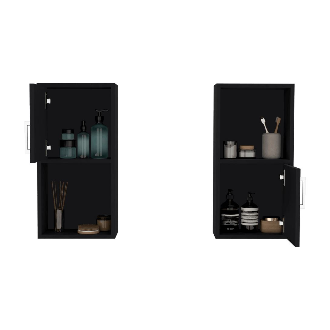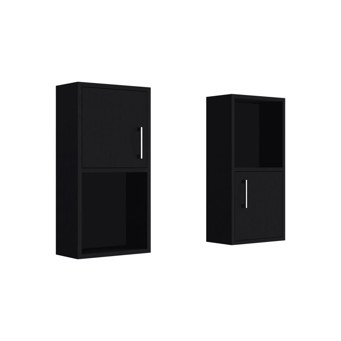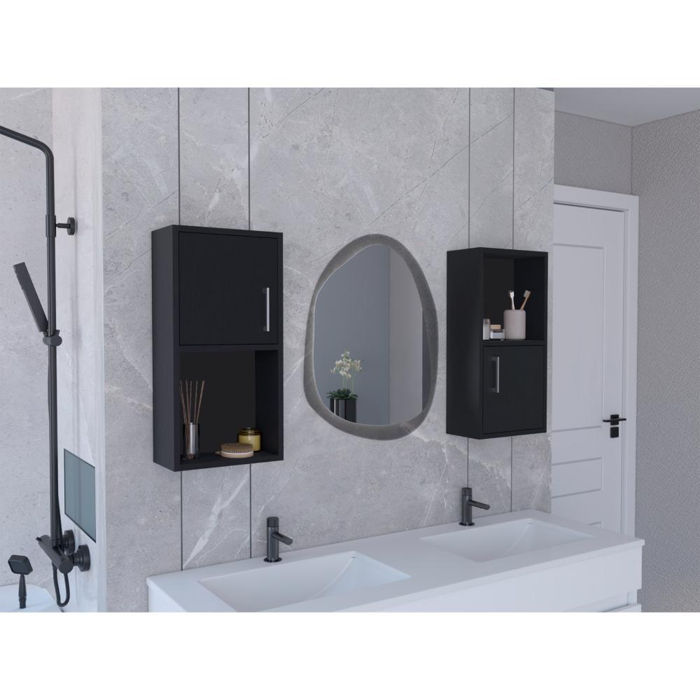 Gabinete de Baño x2, con múltiples entrepaños y superficies para ubicar objetos, incluye ambos gabinetes.