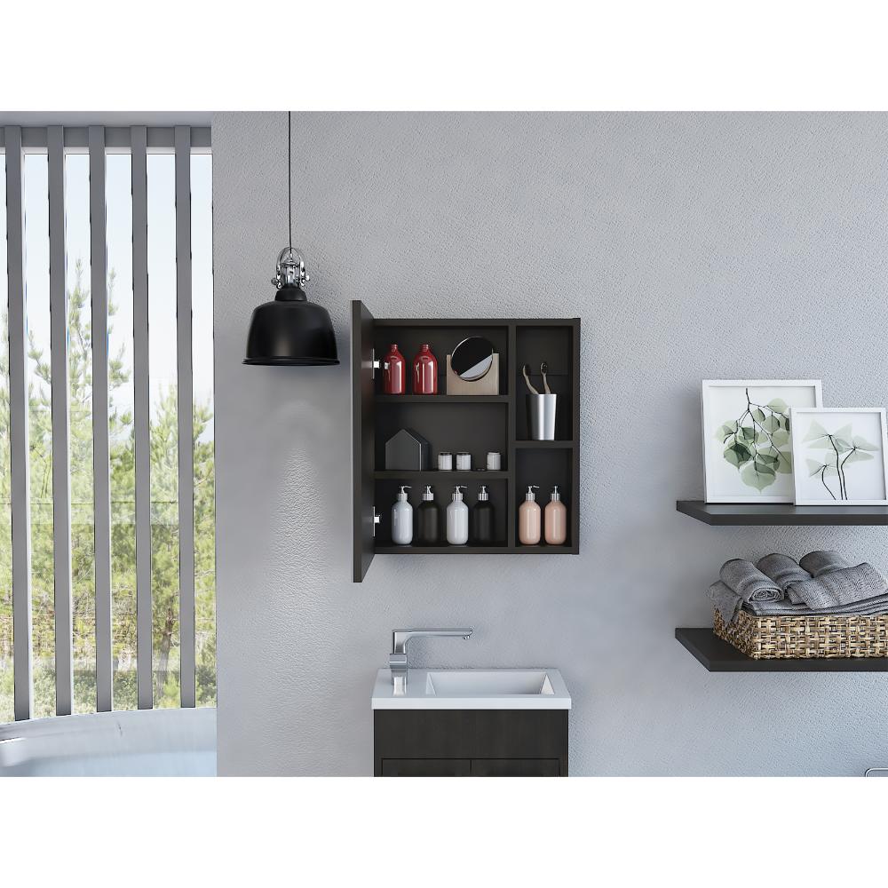 Gabinete de Baño Delhi, Wengue, con Puerta Espejo y Varios Entrepaños