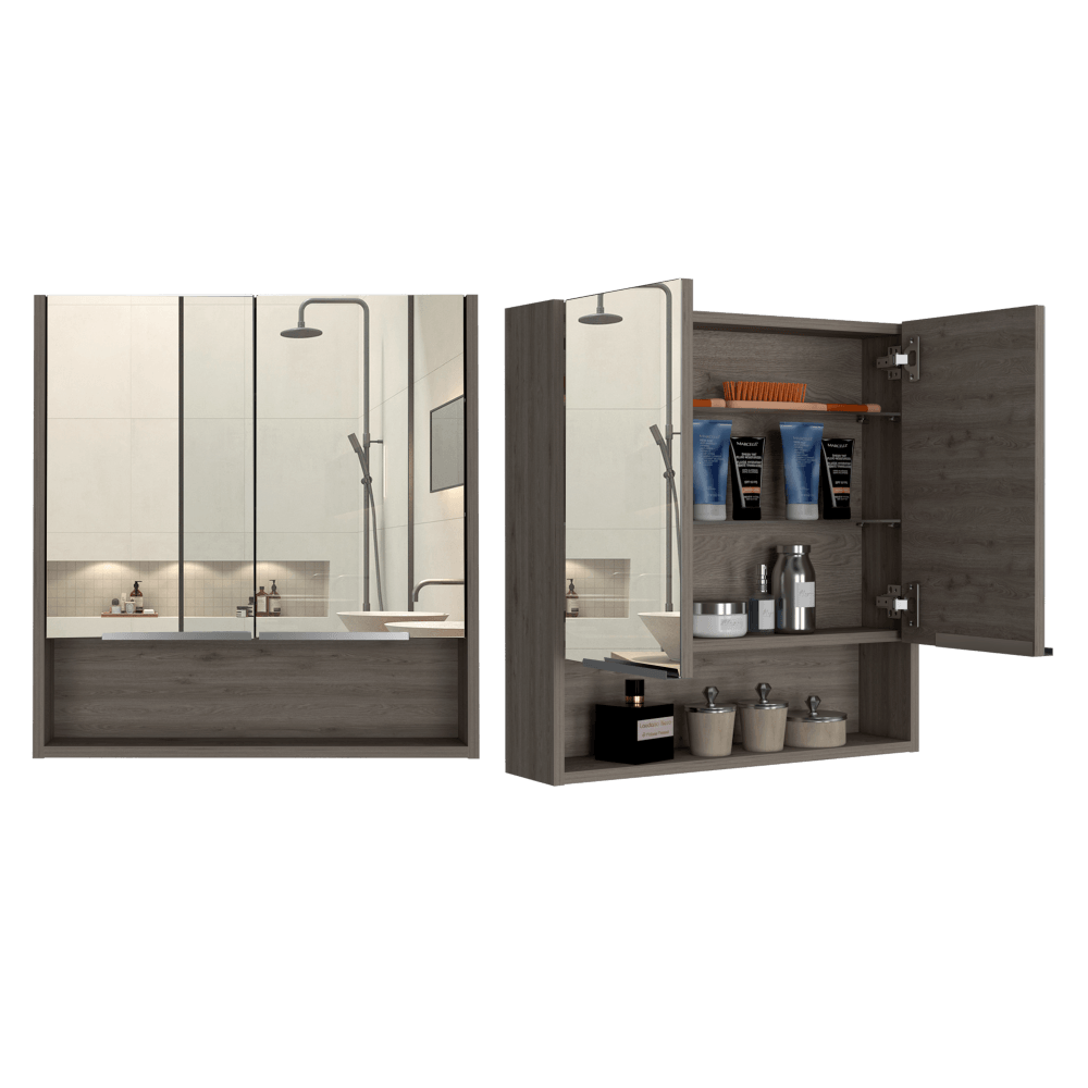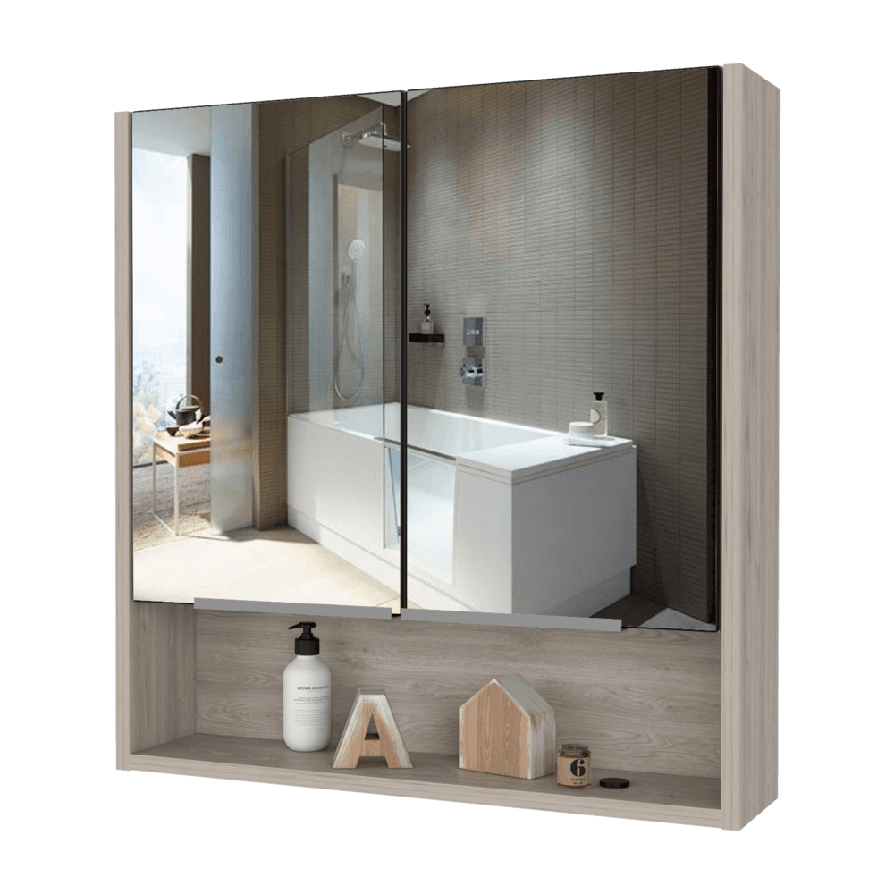 Gabinete de Baño Rawana, Humo, Incluye Espejo y Entrepaños Para Guardar Objetos de Aseo ZF X2