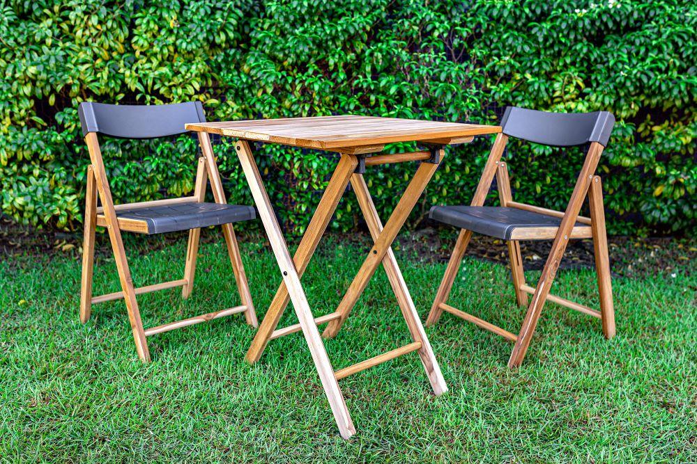 Juego de Balcon Potenza 3 Pzs,elaborado en Madera Tauari, Incluye 2 sillas potenza y una mesa potenza, En color Café claro.