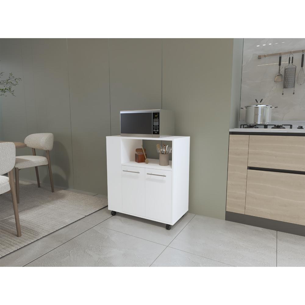 Mesa Auxiliar de Cocina Eldon, Blanco, con rodachina y rodachina de freno ZF