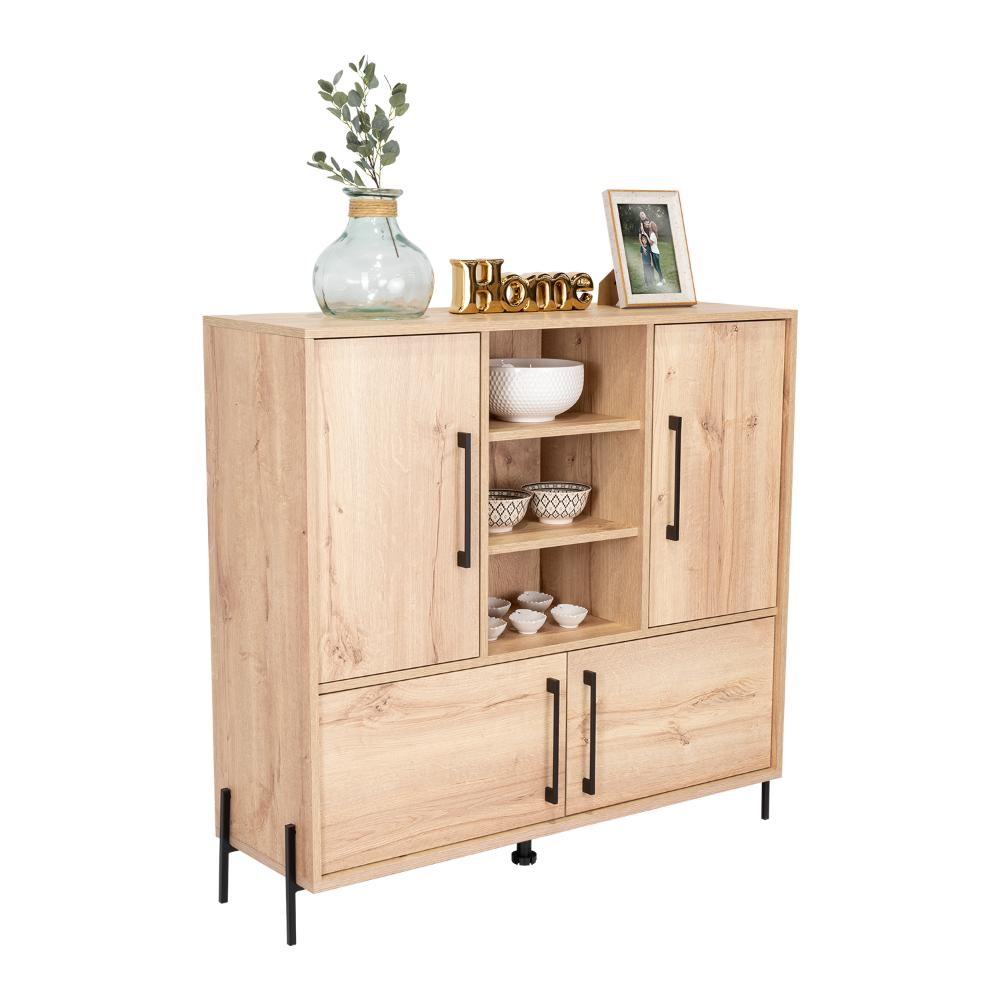Mesa Auxiliar Roust, Café Claro, con Cuatro Puertas y Amplio Espacio de Almacenamiento