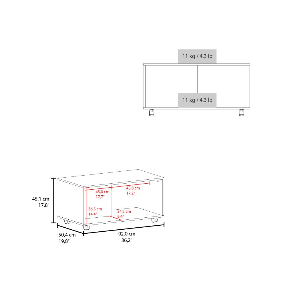 Mesa de Centro, con espacio para colocar objetos decorativos, diseño moderno con combinación de colores, facil de armar.