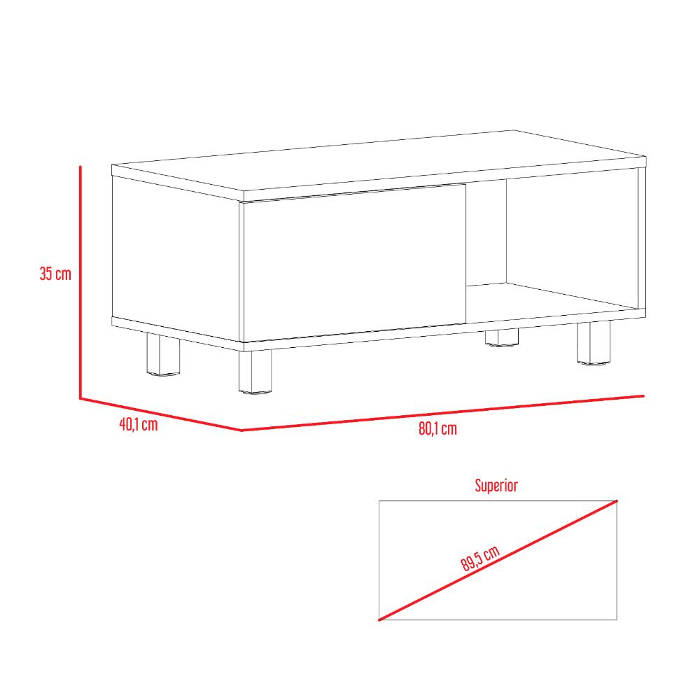 Mesa de Centro, con 1 entrepaño y patas metálicas.