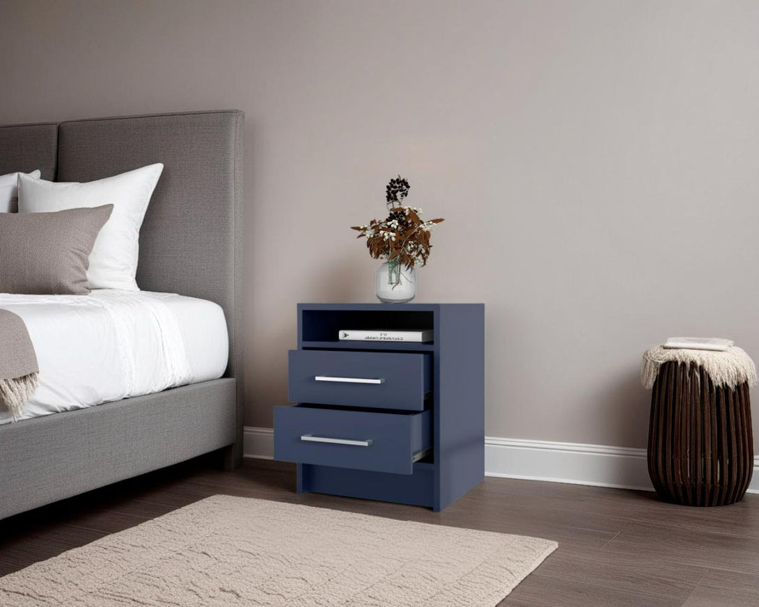 Mesa de Noche Douglas, Kronos Azul, Con Dos Cajones, Espacio Para Libros Y Objetos Decorativos