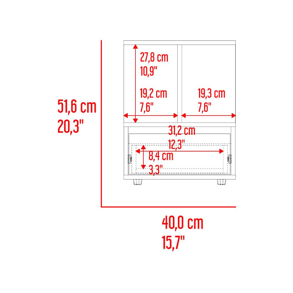 Mesa de Noche, cuenta con 1 cajón multisuos, espacio para colocar objetos decorativos, combinación de colores y es de facil instalación.