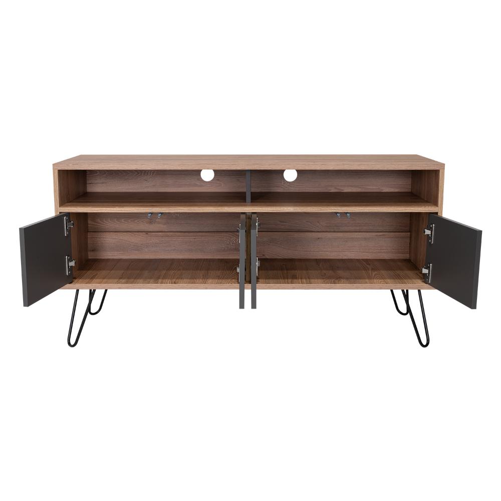 Mesa para TV, para tv 55", con 2 entrepaños dobles y 4 puertas batientes con apertura push.