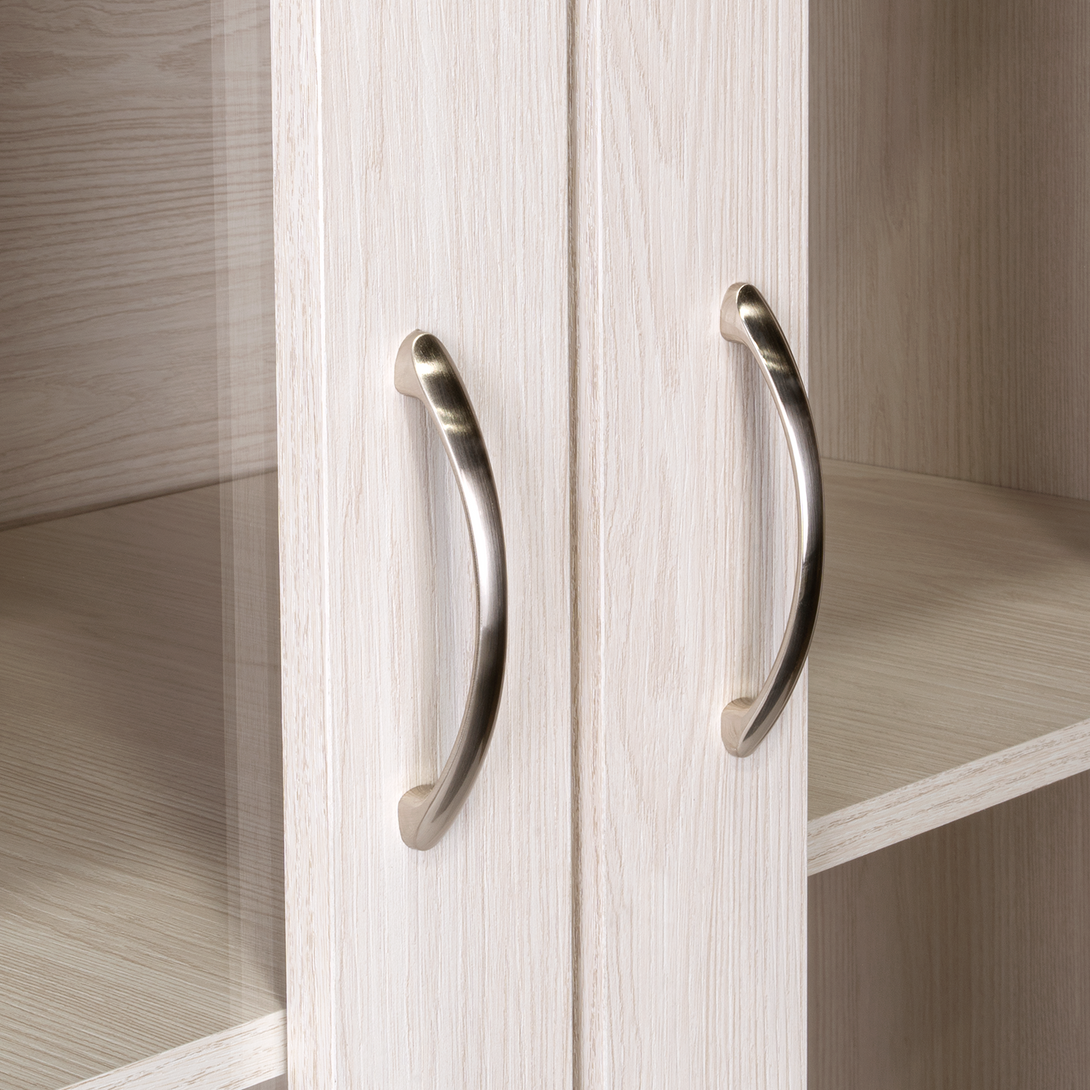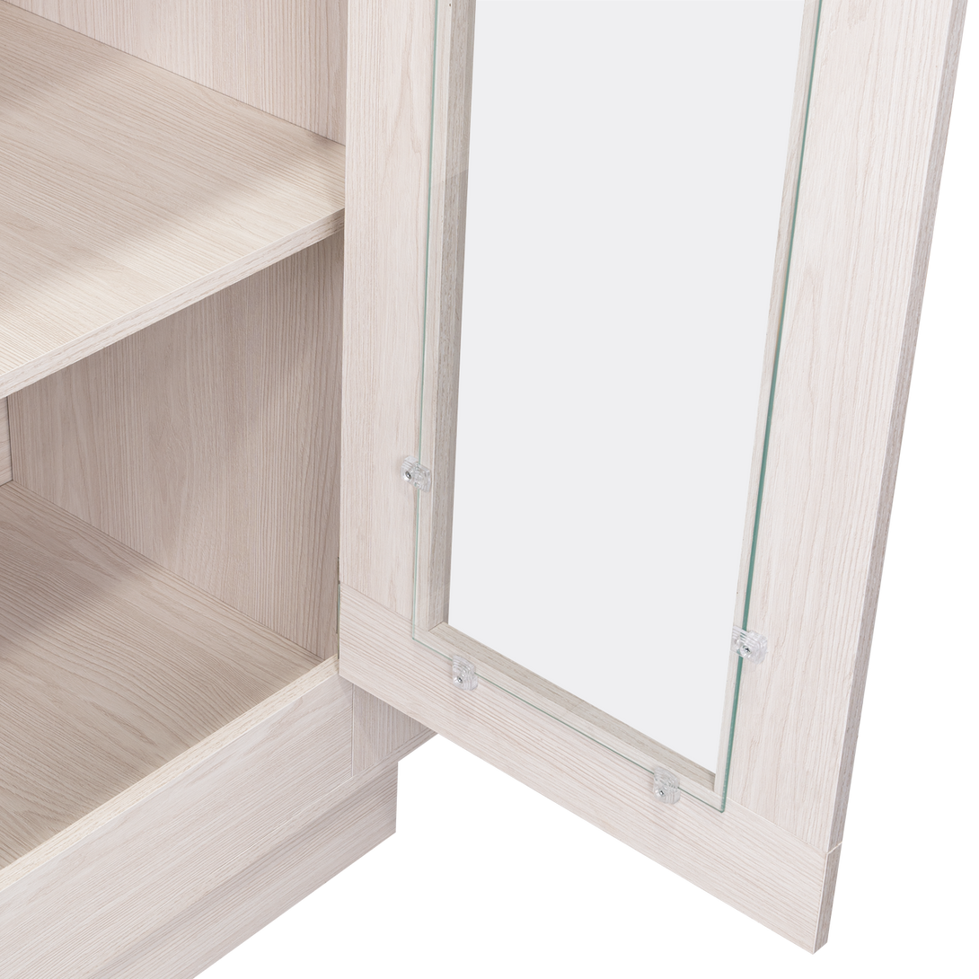 Mueble Multiusos, optimiza tus espacios, creando lugares de almacenamiento únicos a la vez de obtener zonas de exhibición ideales para tu negocio. Con 2 puertas abatibles con vidrio, diseño moderno con manijas metálicas y múltiples entrepaños para ubicar objetos.