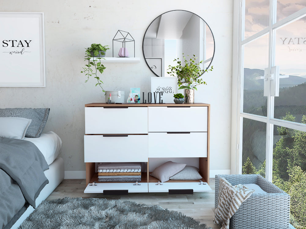 Organizador Wesley, Miel y Blanco, con 4 Cajones