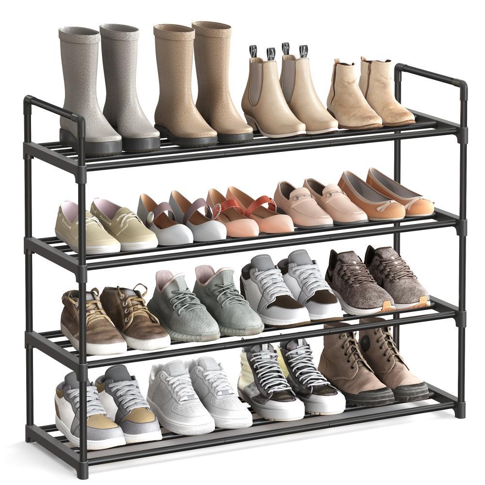 Zapatero de zapatos de 4 niveles, estante de almacenamiento de zapatos de metal para 20 pares de zapatos, fácil de montar, entrada, negro