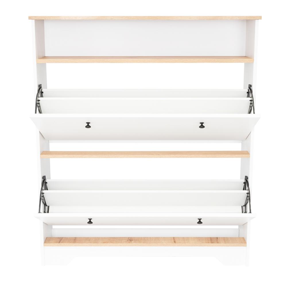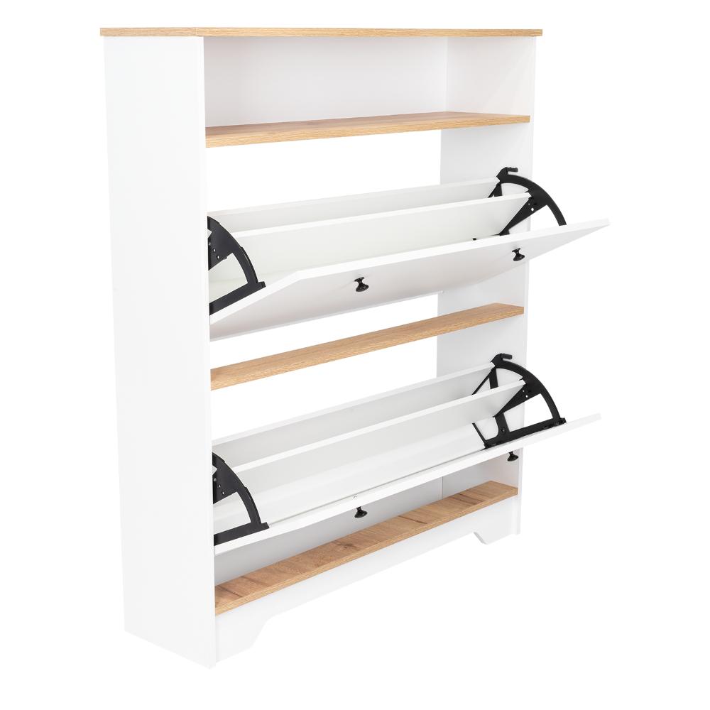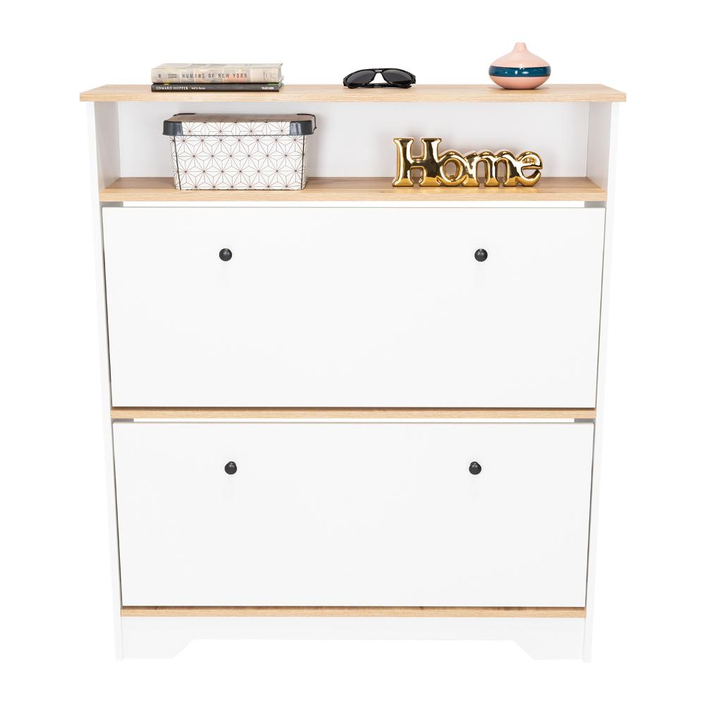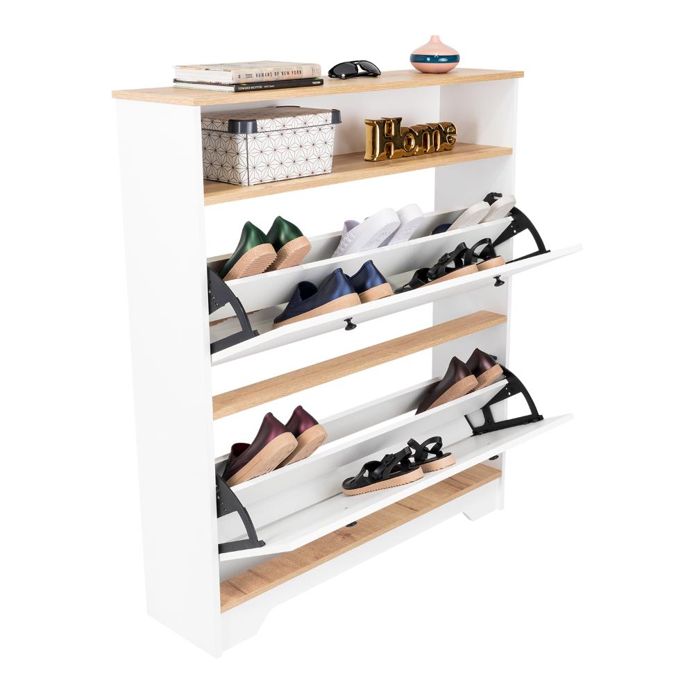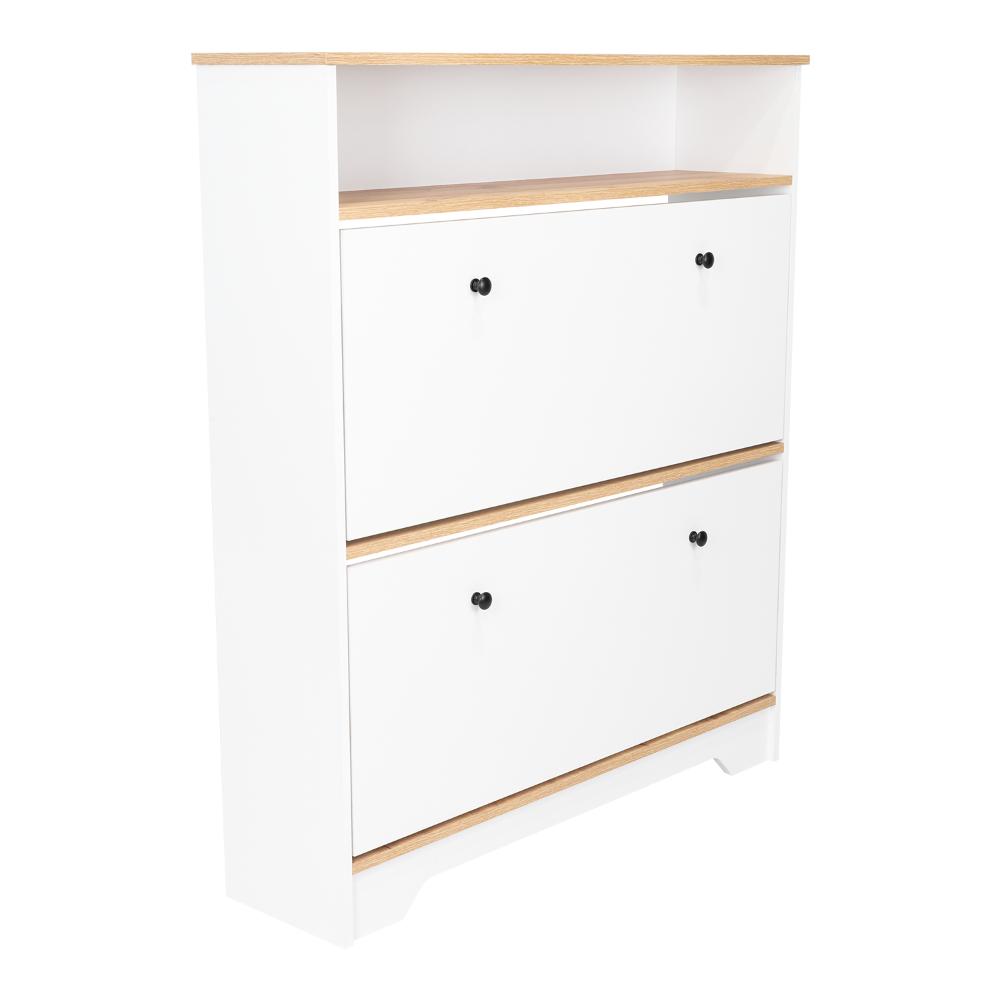 Zapatero, con espacio para almacenar zapatos, con diseño funcional y Dos puertas abatibles e incluye manijas metálicas.